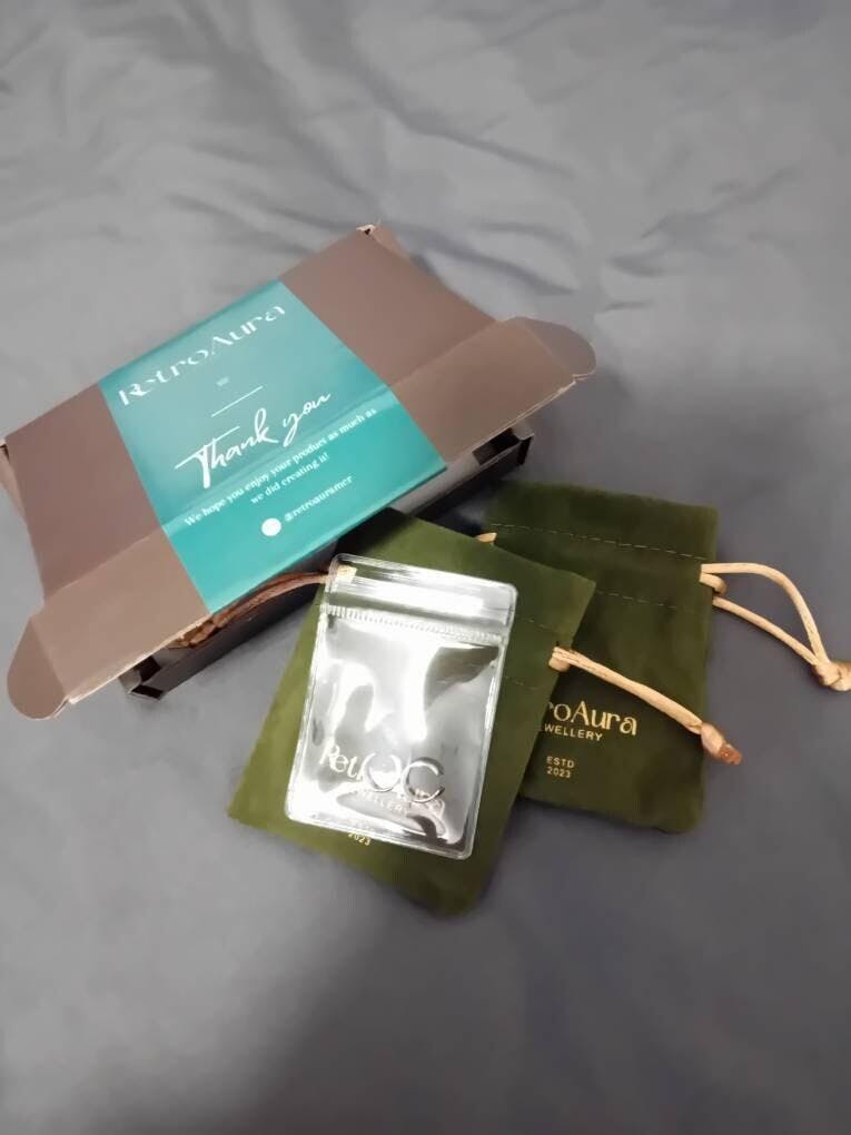 Elevate your gifting experience with our meticulously crafted packaging. Every piece of jewelry from our collection is carefully encased in our exclusive velvet gift pouch, further adorned with plastic-free tissue paper. Committed to sustainability, we've chosen eco-friendly materials for our packaging, including recyclable postal boxes and 100% biodegradable mailing bags. With each purchase, you not only receive a stunning piece of jewelry but also contribute to our efforts towards environmental responsibility.